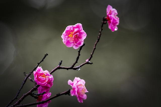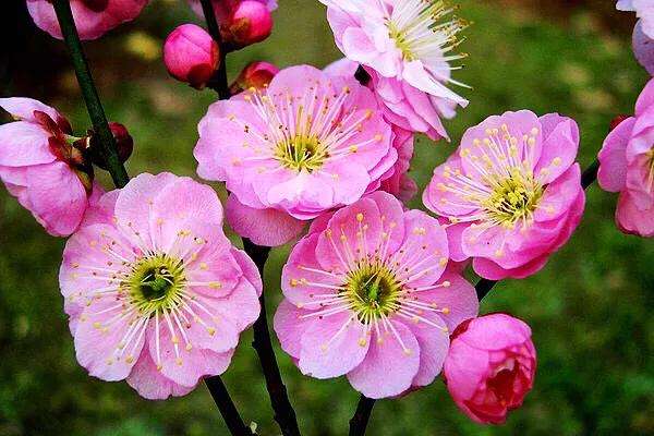 宫粉梅属于真梅,它的花瓣一般是复瓣或重瓣,颜色多为红色,或深或浅。作为观赏性的花梅,它的花开的很密集,而且颜色偏淡,还有一种清香的味道。无论是孤植、丛植还是群植都非常的不错,还经常和松树、竹子搭配造景。